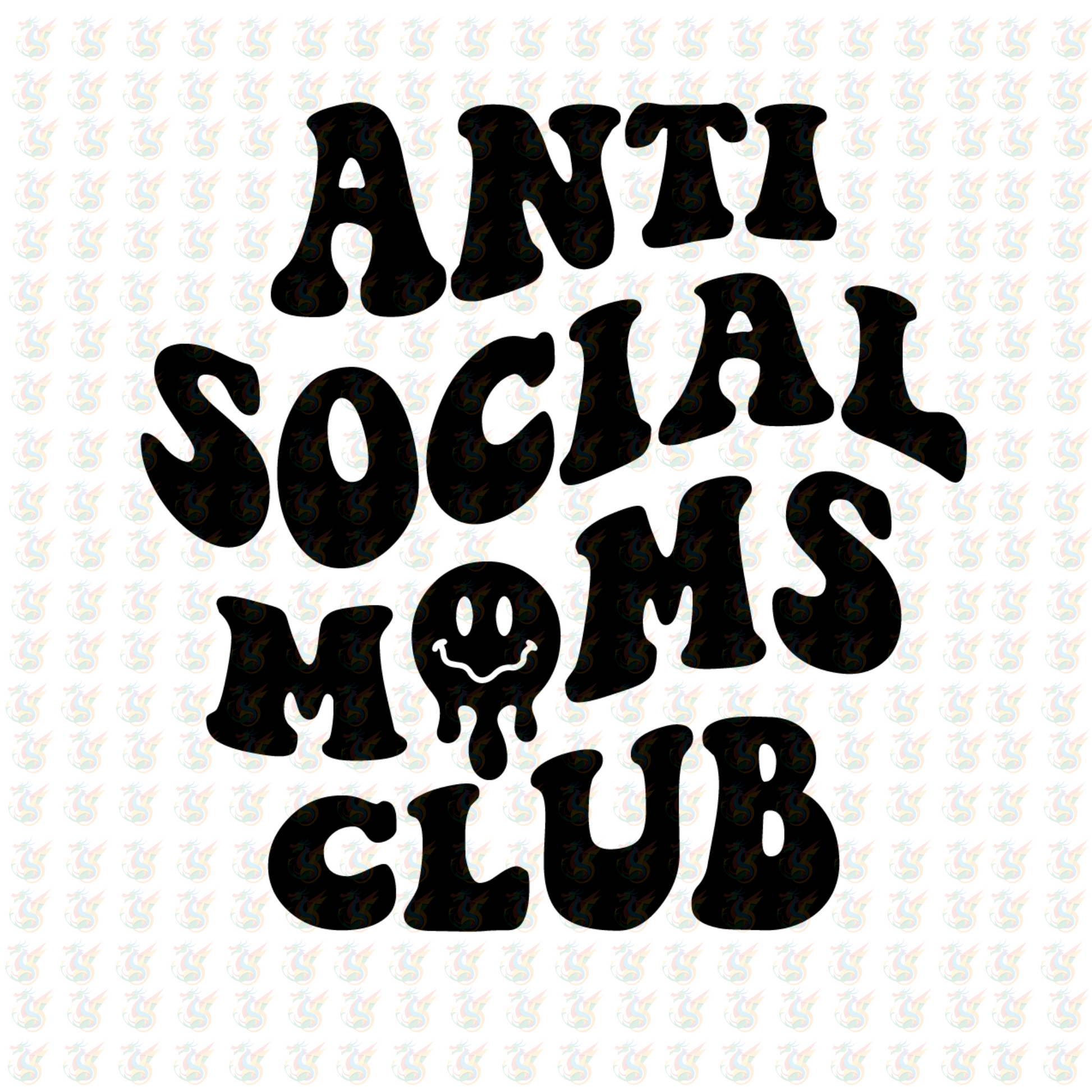 Celebrate motherhood with a twist of humor and style! This “ANTI SOCIAL MOMS CLUB” Ready to Press DTF transfer features a bold retro bubble font and a playful melting smiley face in the center. Perfect for moms who love to stand out — ideal for customizing sweatshirts, t-shirts, or tote bags. Easy to press on cotton or polyester garments, this design makes a fun statement for casual wear or mom squad gifts!
