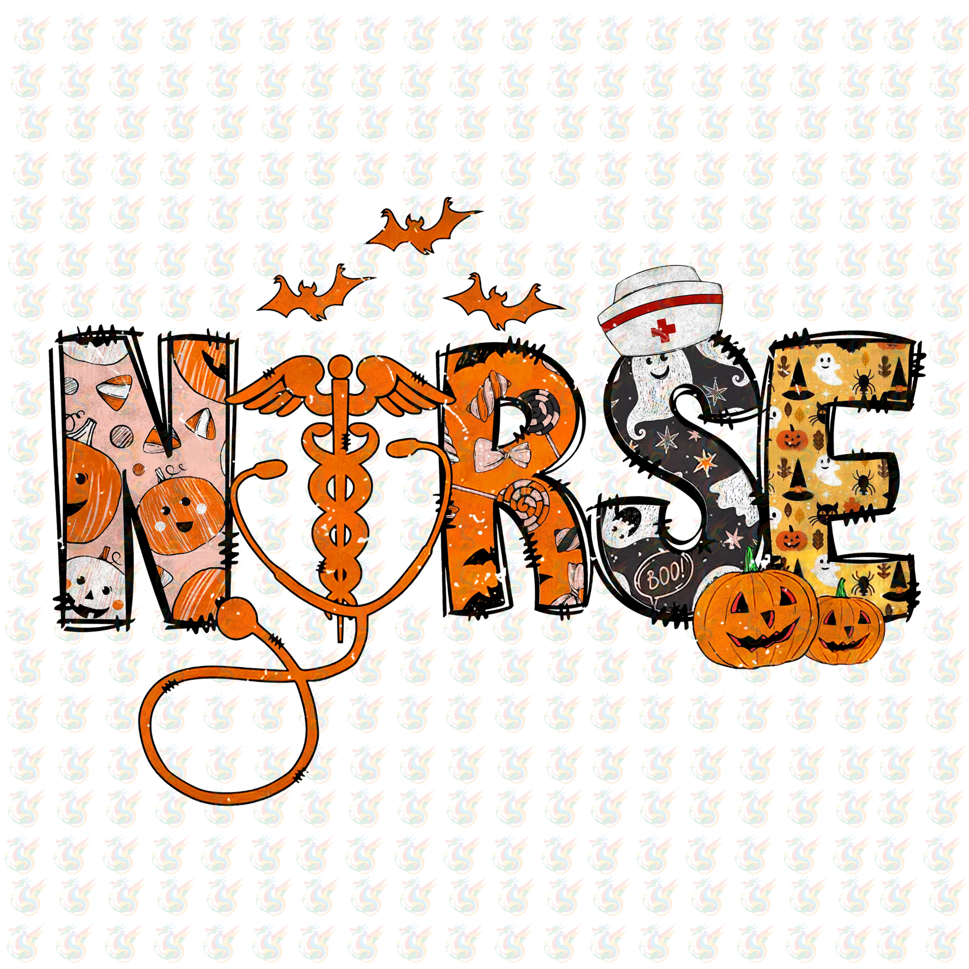 Halloween Nurse DTF Transfer – Spooky Fall Medical Design – Ready to Press