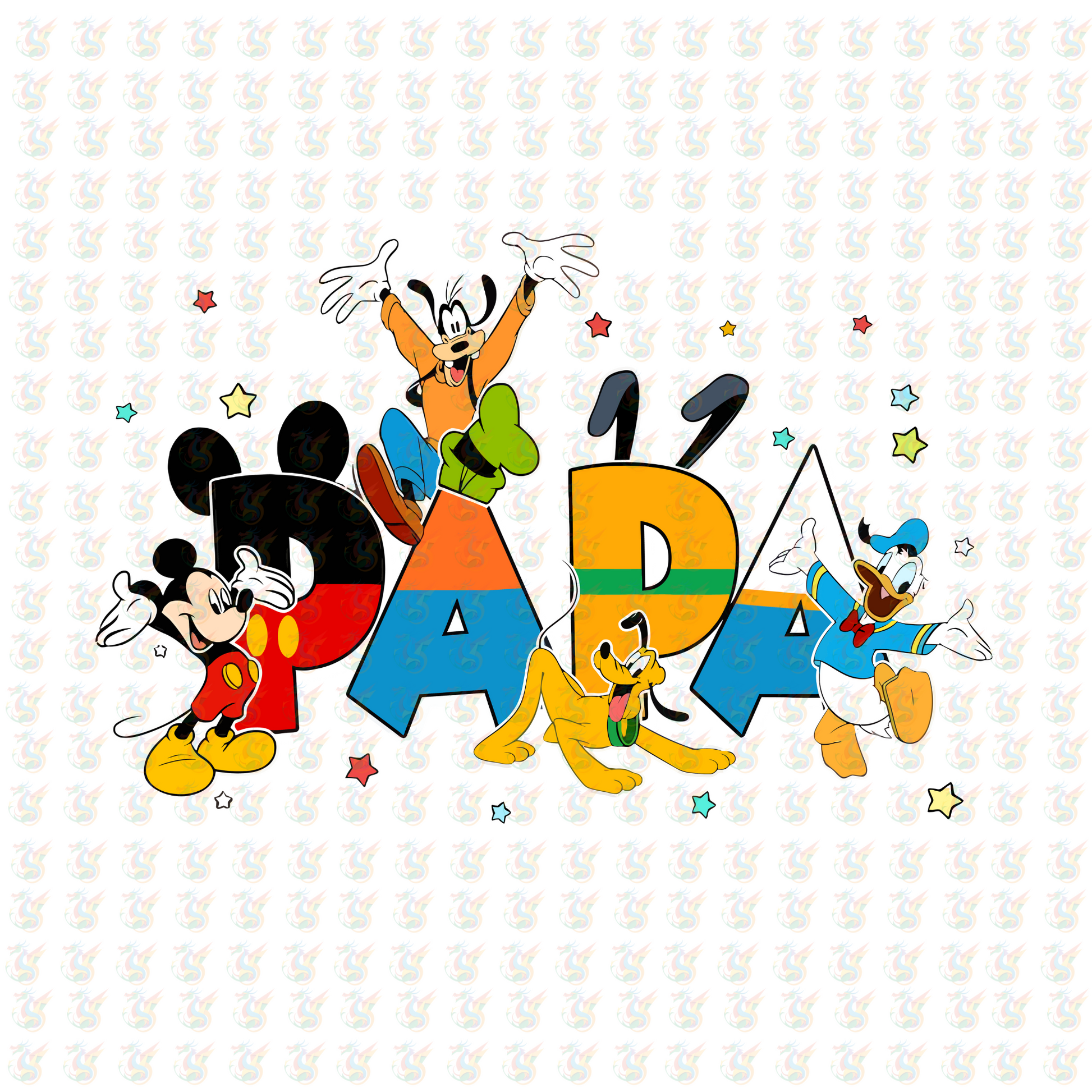 Celebrate the fun-loving spirit of fatherhood with this vibrant “PAPA” Ready to Press DTF transfer featuring Mickey Mouse, Donald Duck, Goofy, and Pluto. Perfect for Disney trips, Father’s Day, or family photo outfits, this design is full of character and color. Easy to apply on cotton or polyester fabrics with a bold and long-lasting finish.