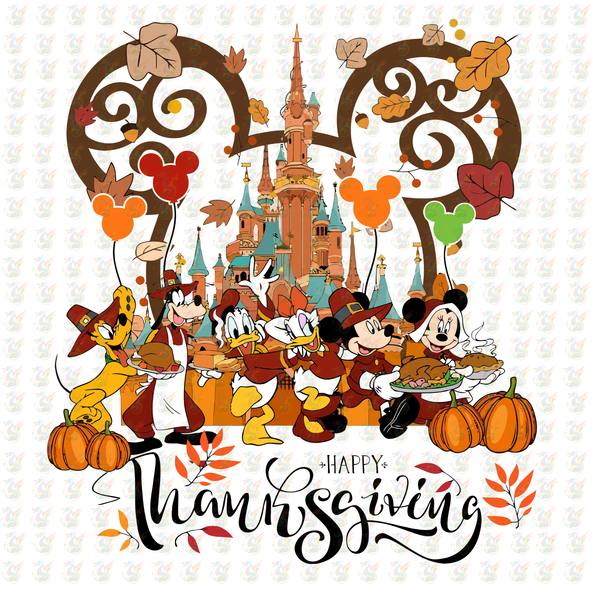 Thanksgiving Disney Castle DTF Transfer – Mickey & Friends Feast – Fall Castle Design