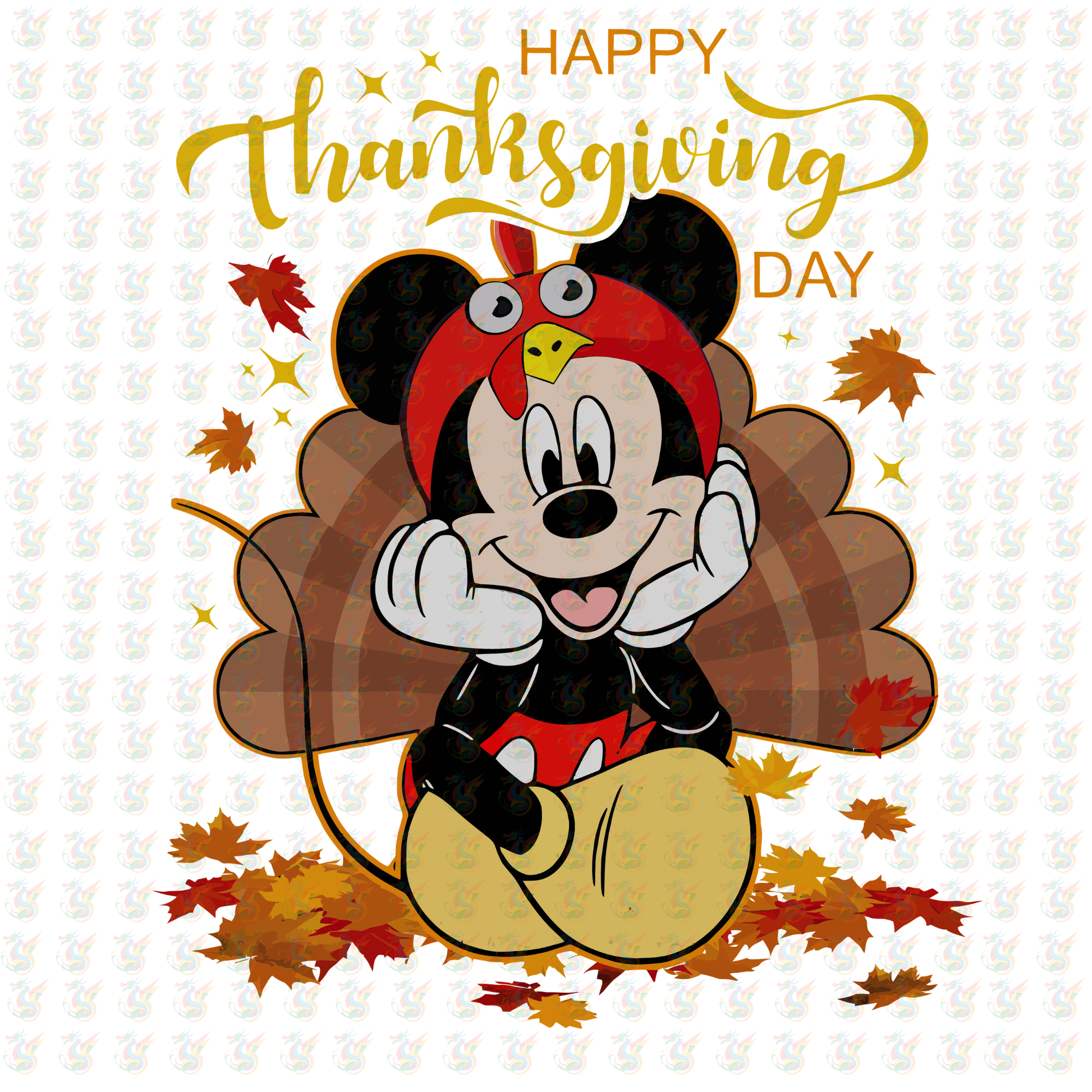 Thanksgiving Mickey DTF Transfer – Turkey Hat & Fall Leaves – Ready to Press