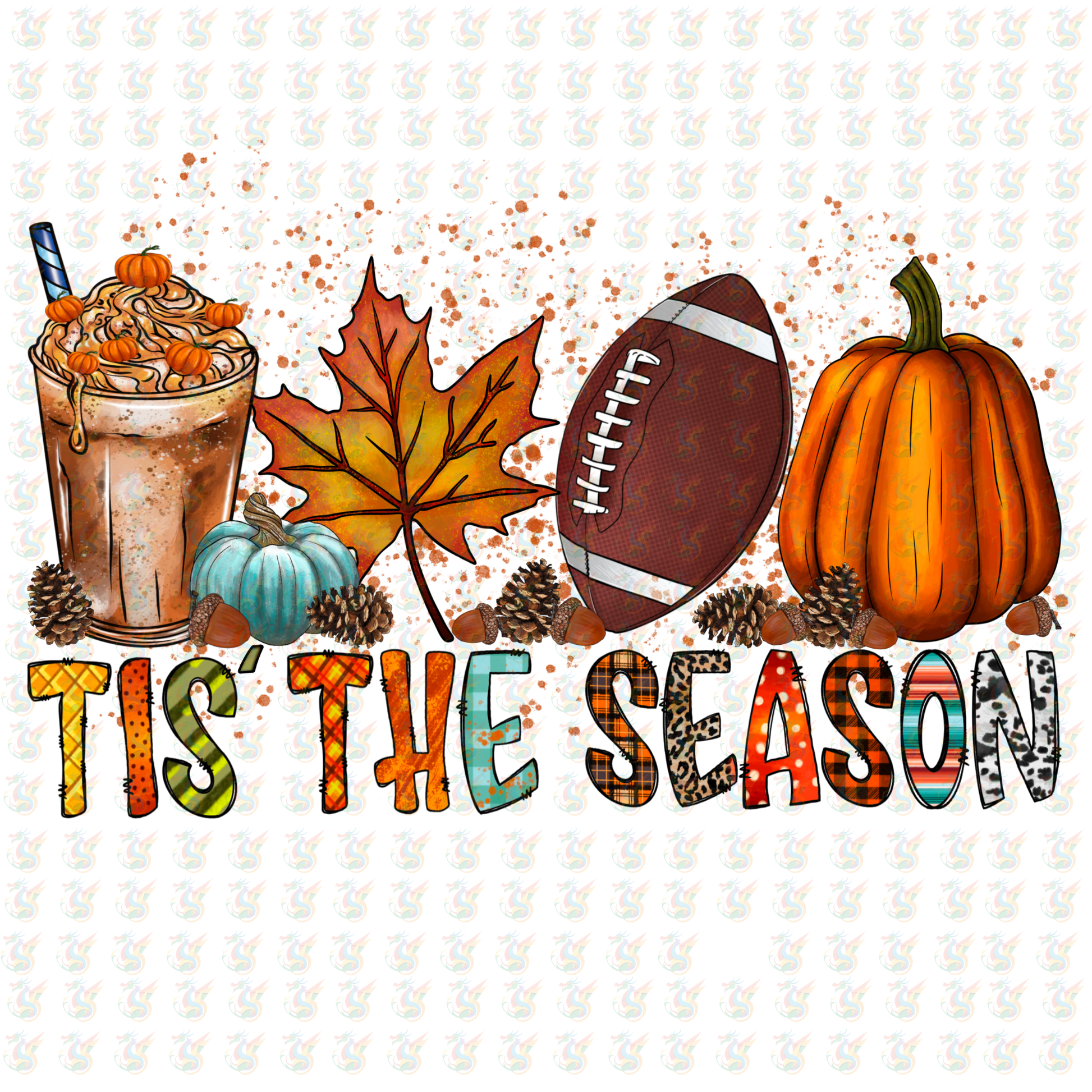 Celebrate everything you love about fall with this vibrant ’Tis the Season Ready to Press DTF transfer! Featuring autumn icons like pumpkin spice drinks, colorful leaves, football, and pumpkins, this design captures all the cozy vibes. With plaid, leopard, and southwestern print accents, it’s perfect for fall shirts, tailgating, or Thanksgiving outfits. Easy to apply on cotton or polyester garments.