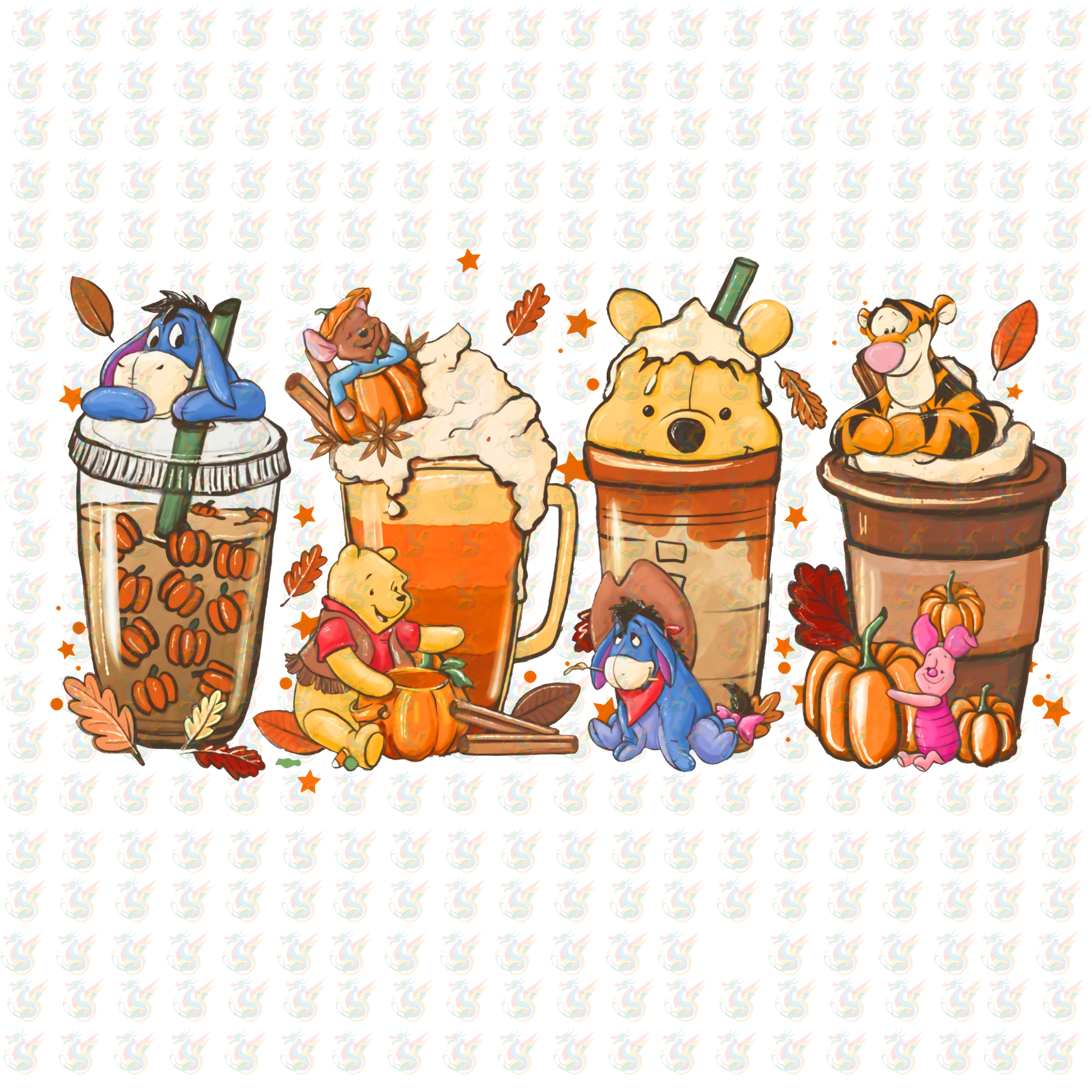 Winnie the Pooh Fall Drinks DTF Transfer – Ready to Press – Autumn Coffee & Pumpkin Design