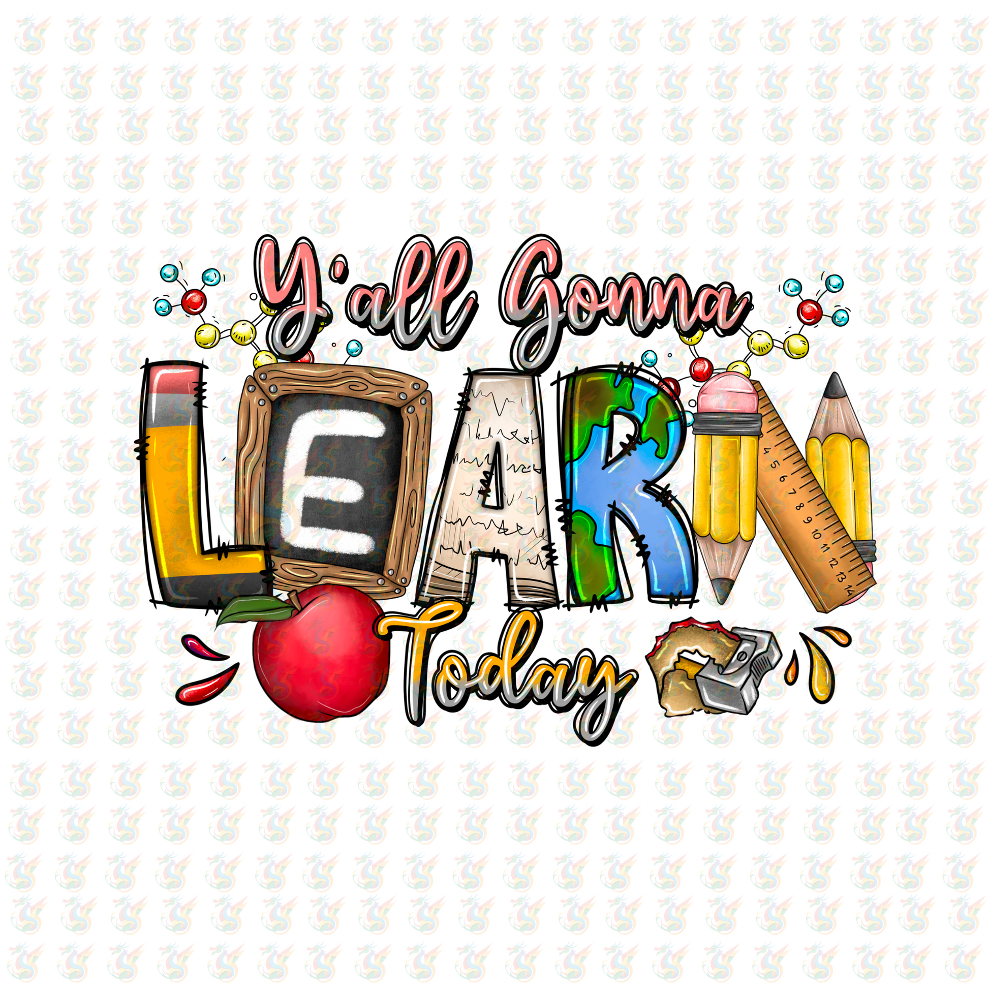 Y’all Gonna Learn Today DTF Transfer – Colorful Teacher Design – Ready to Press for Back to School or Classroom Wear